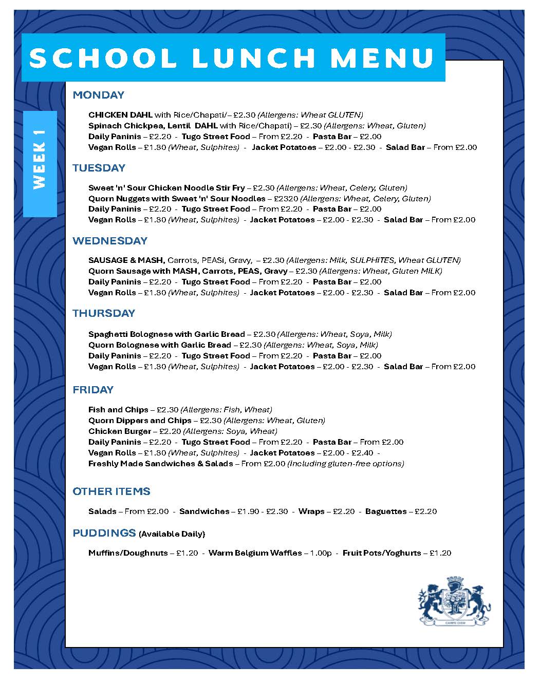 Below is a copy of the current Canteen menu: