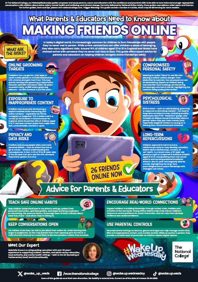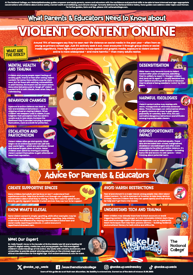 The National Online Safety website: https://nationalonlinesafety.com/ has a vast amount of supportive material relevant to parents/carers and children of different ages.